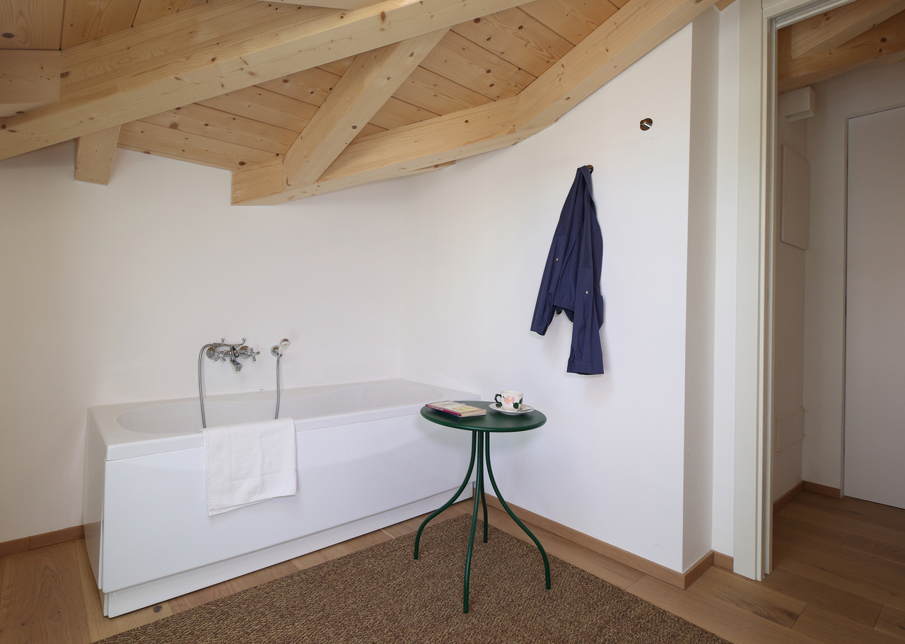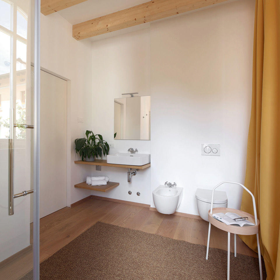 Il bagno in comune, sempre mantenuto in perfette condizioni di pulizia, è dotato di doccia o vasca, asciugacapelli e set di cortesia, offrendo praticità e comfort a tutti gli ospiti.