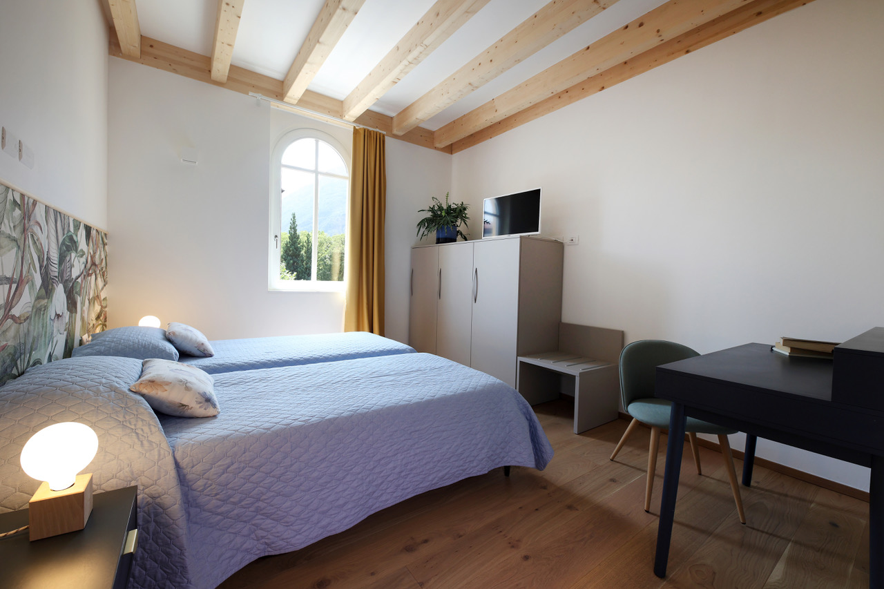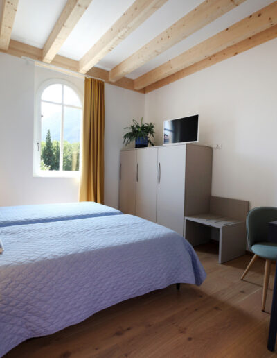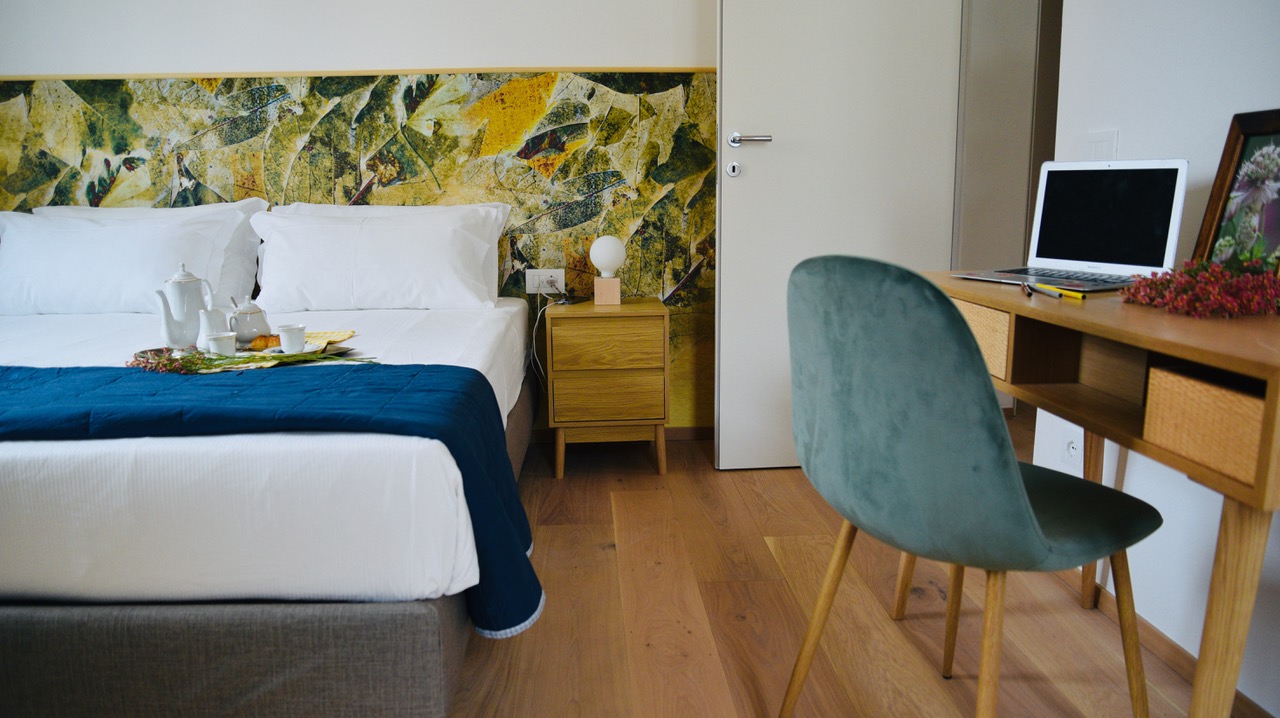 Ogni camera è arredata con gusto contemporaneo, caratterizzata da tonalità rilassanti e materiali naturali che creano un’atmosfera calda e piacevole. I letti, ampi e confortevoli, garantiscono un riposo rigenerante, mentre gli spazi sono organizzati per offrire comodità e privacy. Le camere quadruple dispongono di un divano letto aggiuntivo, perfette per ospitare fino a quattro persone.